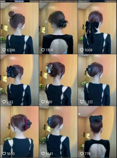 那么我们的搞钱思路就很清晰了,抓住扎头发这个刚需场景,反复拍摄带货即可。